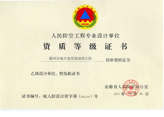 經(jīng)過(guò)建筑室、辦公室和總師室的共同努力,我院申報(bào)的人防工程設(shè)計(jì)乙級(jí)資質(zhì),于2014年5月5日獲得安徽省人民防空辦公室批準(zhǔn),這標(biāo)志著我院可以承擔(dān)本省范圍內(nèi)2萬(wàn)平方米以下人防工程建設(shè)項(xiàng)目(不含各類(lèi)人防指揮所、專(zhuān)業(yè)隊(duì)工程、醫(yī)療救護(hù)工程、一等人員掩蔽部)主體工程、配套工程及地面附屬設(shè)備設(shè)施用房的設(shè)計(jì)業(yè)務(wù)。
