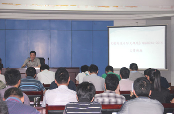 市規(guī)劃院院長賀玉龍傳達了“省《規(guī)范》GB50016-2014宣貫培訓(xùn)”精神,并與參加省宣貫培訓(xùn)的胡自立、崔睿、李文成、沈光紅、陳潔、密齊峰六位同志一起,分別從規(guī)劃選址、平面布局、規(guī)劃和建筑工程設(shè)計等側(cè)重點,就新老規(guī)范的變化、新規(guī)范中的總則、術(shù)語和符號、廠房和倉庫、甲乙丙類液體及氣體儲罐(區(qū))和可燃材料堆場、民用建筑、建筑構(gòu)造、滅火救援設(shè)施、消防設(shè)施、電氣、供暖通風和空氣調(diào)節(jié)等方面的重點內(nèi)容,向與會人員進行了傳達和講解。