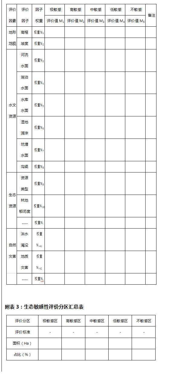 生態(tài)敏感性評價應(yīng)首先構(gòu)建評價體系并選取生態(tài)敏感性因子,明確評價模型及方法,確定評價標(biāo)準(zhǔn)并最終明確生態(tài)敏感性的空間分布(詳見附表2)。